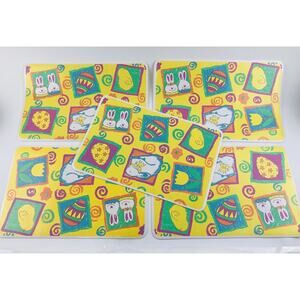 5 Vintage Sultan's Linens Vinyl Placemats Easter Bunny Rabbit Eggs Chicks Flower