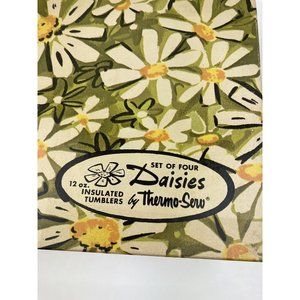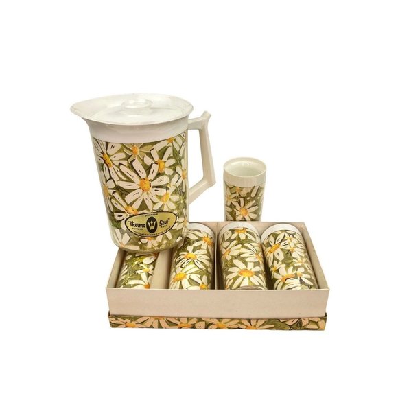 5 Vintage West Bend Thermo-Serv Daisy Plastic tumblers 70s Pitcher RETRO Green