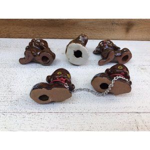 5 Vintage Japan Creepy brown dogs leash ceramic figurine Redware Pottery MCM 60s.
