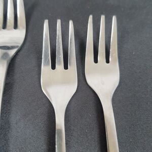 5 Vtg Oxford Hall International Stainless Cocktail Forks Rose Pattern Japan