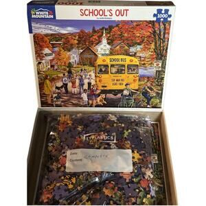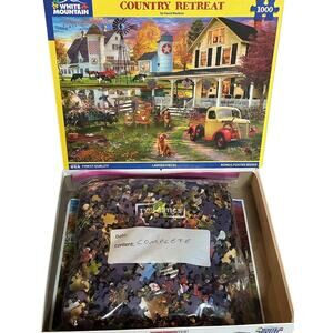 White Mountain puzzle bundle lot of 5 x 1000 pieces each, autumn/fall theme. All hand counted and verified. 4 puzzles complete with bonus puzzle (missing 2 pieces). Carefully inspected and ready for cozy nights, collectors, or gifting.