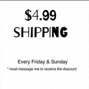 weekend shipping special $4.99 every Friday/Sunday(must message me to receive a discount)