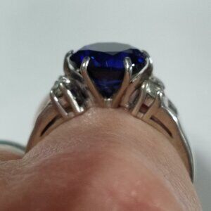 5 ct Genuine Sapphire & Topaz Ring size 7 Sterling Silver stamped 925 tested