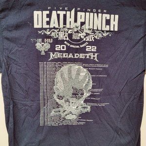 5 Finger Death Punch 2022 tour shirt Navy Blue Double sided with Megadeth and bands listed with tour dates