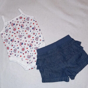 5 for $10 Garanimals Patriotic Tank Onsie & NWT Denim Ruffle Shorts Outfit 3-6M