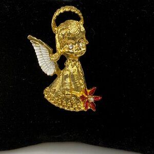 🐱 5 for $10. Gerry's Goldtone Angel Christmas Pin Brooch