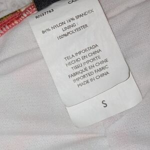 built in looped Sash. ruched butt. has been washed but didn't fit me. never worn.