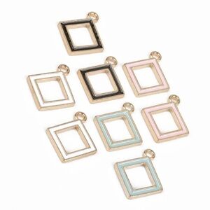 🔴 5 for $10 ONE Black Gold Diamond Shaped Pendant Zinc Alloy Enamel