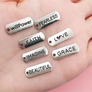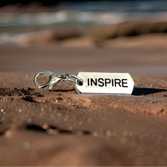 🔴 5 for $10 ONE INSPIRE Silver Tone Inspirational Word Charm Lobster Clasp