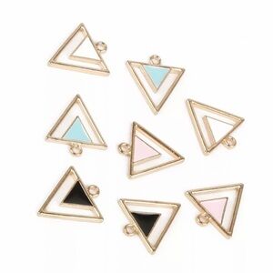 ONE White & Gold Tone Upside Down Triangle Shaped Pendant Charm. Brand new Boutique item. Measurement shown in the photo. Material: Zinc Alloy, Enamel. DIY for necklaces or bracelets. This listing is for ONE pendant, white & gold color. Other colors may be available in a separate listing. Bundle any 5 listings on Sale marked 🔴 5 for $10 to qualify for $10 deal (+ shipping, fees & tax). Add to Bundle and send me an Offer for $10.