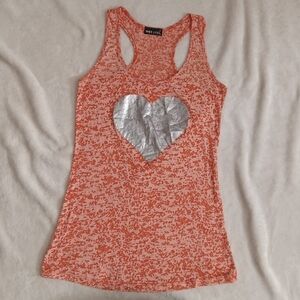 5 for $10 Wet Seal Orange/White Sheer Silver Heart Tank size small