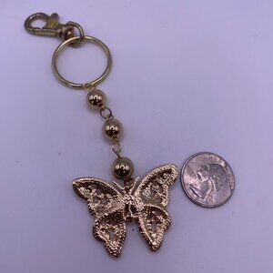 🐱 5 for $10l. Goldtone Pink Butterfly Key Ring with Gold Beads