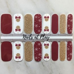 #: classic Christmas red white gold glitter ornament bow Christmas tree dazzle solstice winter nail art wraps stickers acrylic polish strips makeup 2022