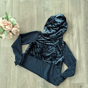 🍁5 for $15🍁 ONLY Our Story Navy Crushed Velvet Semi Cropped Hoodie