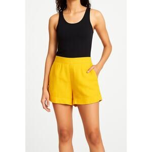 These yellow Banana Republic shorts feature a breezy linen-blend fabric (55% linen, 45% rayon) perfect for warm weather. Designed with a high-rise elastic waistband for comfort, side pockets, for a polished yet casual finish. Measurements approx: waist 14.25”, rise 13.75”, inseam 5”. Lightweight and breathable, ideal for effortless summer outfits.