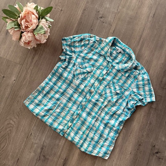 ❄️5 for $20❄️ Croft & Barrow Tiffany Blue Plaid Short Sleeve Button Down Top