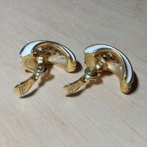 👍 5 for $20 vintage Monet gold tone white enamel half hoop clip on earrings