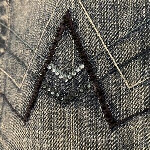 • Signature "A" embroidered rear-pocket design with glitter details