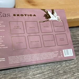 Discover the vibrant shades of the Exotica Eyeshadow Palette Featuring colors like shimmering blue, rich brown, and soft cream, this palette is perfect for creating stunning looks. Elevate your makeup game with 's exquisite collection.
