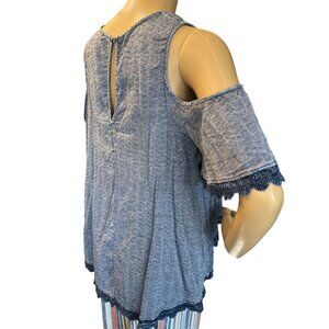 Altar'd State Asymmetrical Cold Shoulder Blouse in Chambray Size Medium