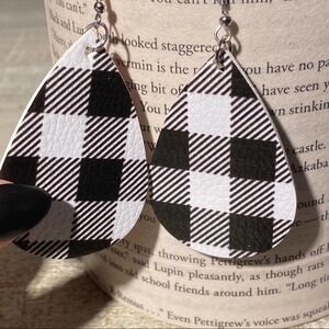 5 for $25 Buffalo Plaid Leather Earrings Black White Plaid Earrings Winter Plaid earrings houndstooth
