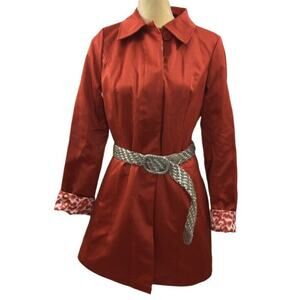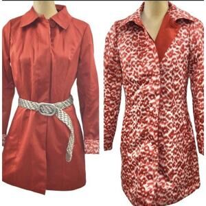 5 for $25 CLEAROUT! Dennis Basso Orange Leopard Reversible Trench Coat Jacket XS