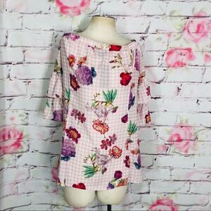 🔥5 for $25🔥 City chic spring blooms pink gingham floral blouse