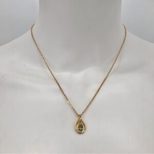 Dainty Gold Necklace with Blue Stone. Stone looks like aquamarine but I’m not positive, hence the price
