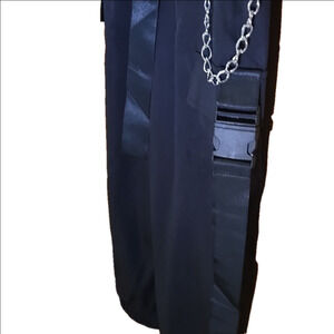 Dressin Solid Belted Pull-on Black Pants with Removable Chain Decor Women size M