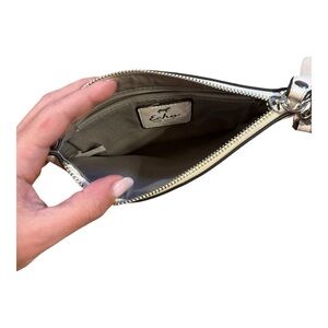 This elegant cream wristlet clutch is perfect for any occasion. Its sleek design and neutral color make it a versatile accessory for your wardrobe.
