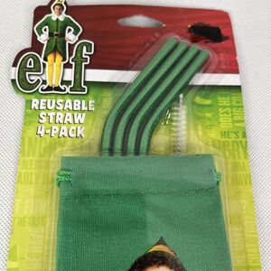 5 for $25| ELF Christmas Reusable Green Stainless Steel Straws w Pouch Brush