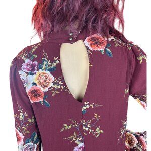 (5 for $25) Floral Print Long Sleeve Swing Dress in Burgundy Size Small