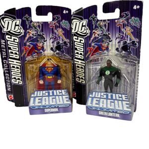 Justice League Unlimited Mini Metal Figure Superman and Green Lantern lot. Mattel. Toy is unopened. Bubble is yellowed. See pics for overall condition.