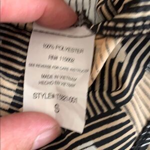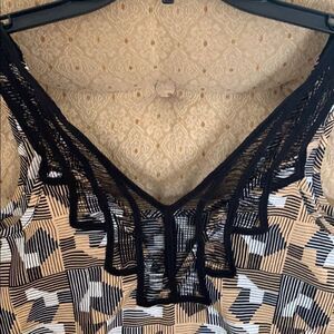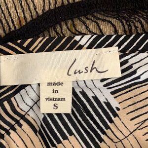 Lush tank. 100% polyester. Beautiful open weave detail on back. Front has some pleating and buttons. Dry clean. Approx. Armpit to armpit measure is 17 inches.