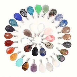 ⭐️ 5 for $25 Natural Stone Water Droplet Pendant Necklace on a Black Cord