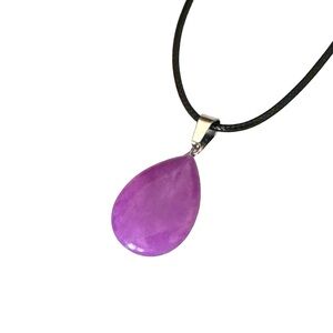 Elegant natural stone teardrop pendant on a black cord. Perfect for any occasion.