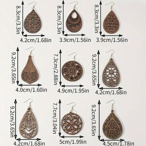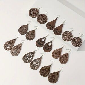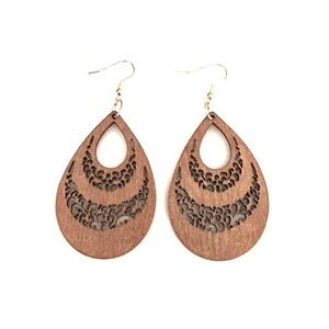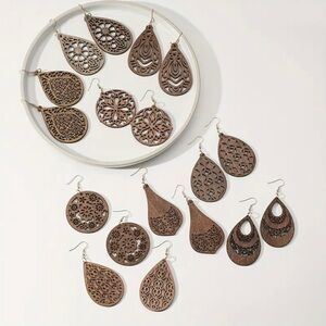 ⭐️ 5 for $25 Natural Wood Brown Painted Lightweight Earrings Gold Tone Hoops