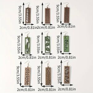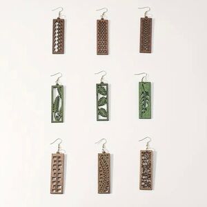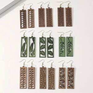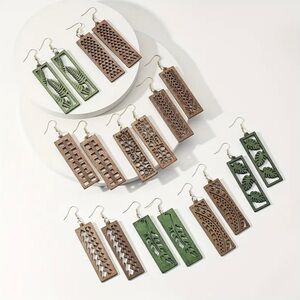 ⭐️ 5 for $25 Natural Wood Green Painted Lightweight Carved Earrings