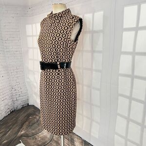 🔥🔥5 for $25🔥🔥 Nine West Allover Print Sleeveless Roll Collar Tan Knit Sheath