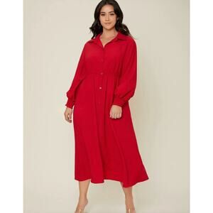 5 for $25| SHEIN Plus Red Lantern Sleeve Button Front Shirt Midi Dress NWT