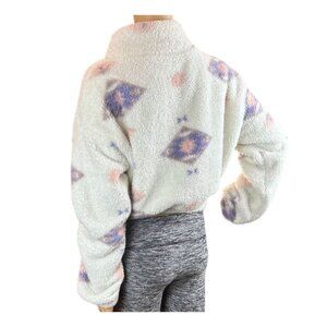 SO 1/4 Zip White Sherpa Pullover in Girly Tribal Print Size Small