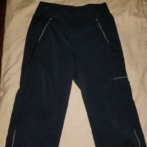 Super comfortable navy blue cropped golf pants! 5 zippered pockets with zipper extension at the hem.