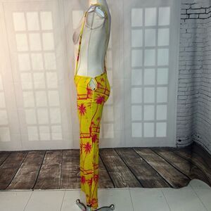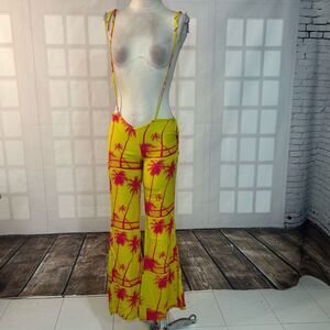 Fun bright yellow and hot pink palm tree design pants with waist or shoulder ties.