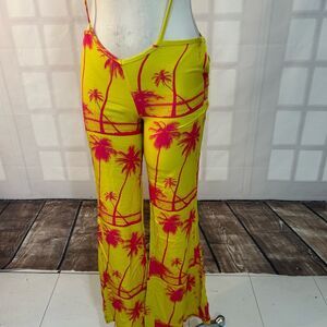 Urban Outfitters yellow pink Palm Tree wide leg Pants Size 2