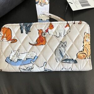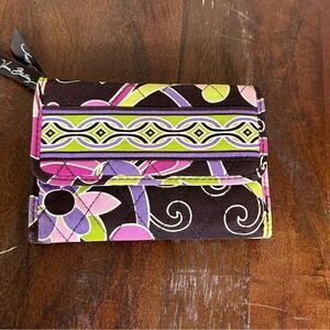 Vera Bradley Black Flap ID Wallet With Silver Studs & Pushlock Closure