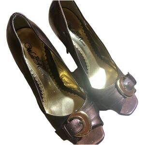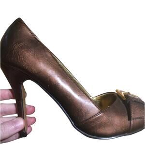5 for $25 - SALE! Bundle items marked 5 for $25 -mix and match, no limits - though boxes over 5 pounds will incur additional shipping charge. Just add to bundle and I'll send the discount!Gorgeous brown Wild Rose brand heels shoes in EUC. Size 7.5. Open toe style. Brown/gold tone strap buckle embellishment on the front. Glossy type material. Man made. Only a couple of very very tiny white marks as seen in pics that can barely be seen at unless you’re looking way up close. Heel height about 4”. I don’t know how they run so if you run in between sizes, size up half size.