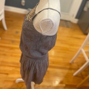 Old navy beige gray tank top tunic dress. Embellished top. Some of the sequin are missing, but not very noticeable. Shown in photos. Otherwise excellent condition! Size small
