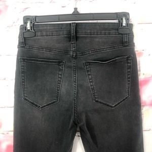 Fun flirty and feminine casual washed black high waisted skinny ankle jeans with white and black velvet side stripe. Excellent used condition