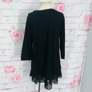 Fun flirty and feminine easy to wear stretchy knit beaded faux layered black blouse. Great for business casual office work attire or everyday wear. Excellent used condition