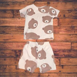 5 for $25🔥3-6 Months Bear Print Ribbed Outfit Set